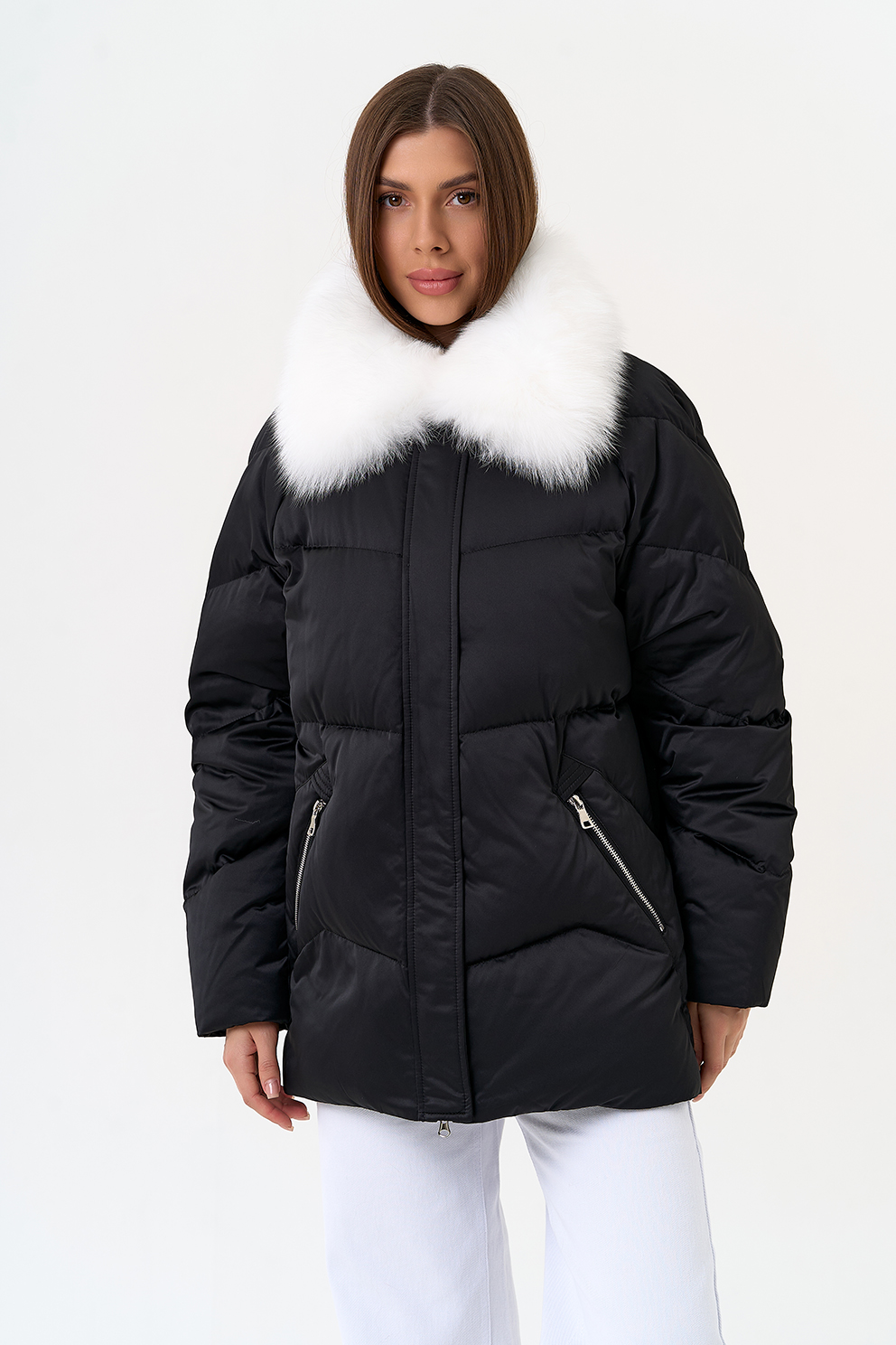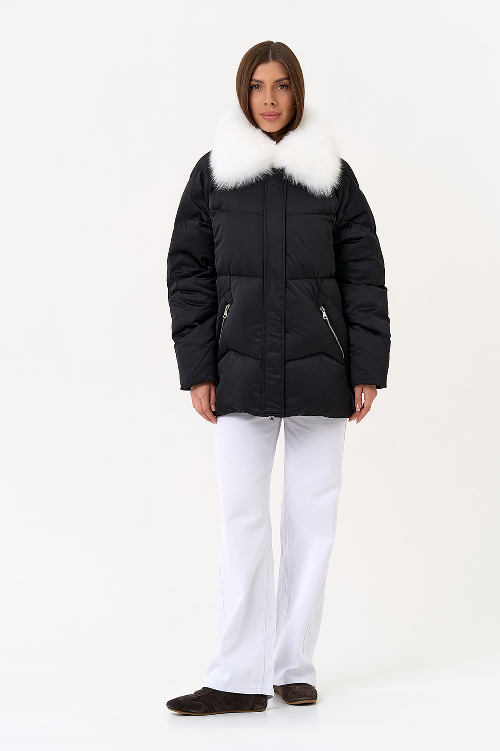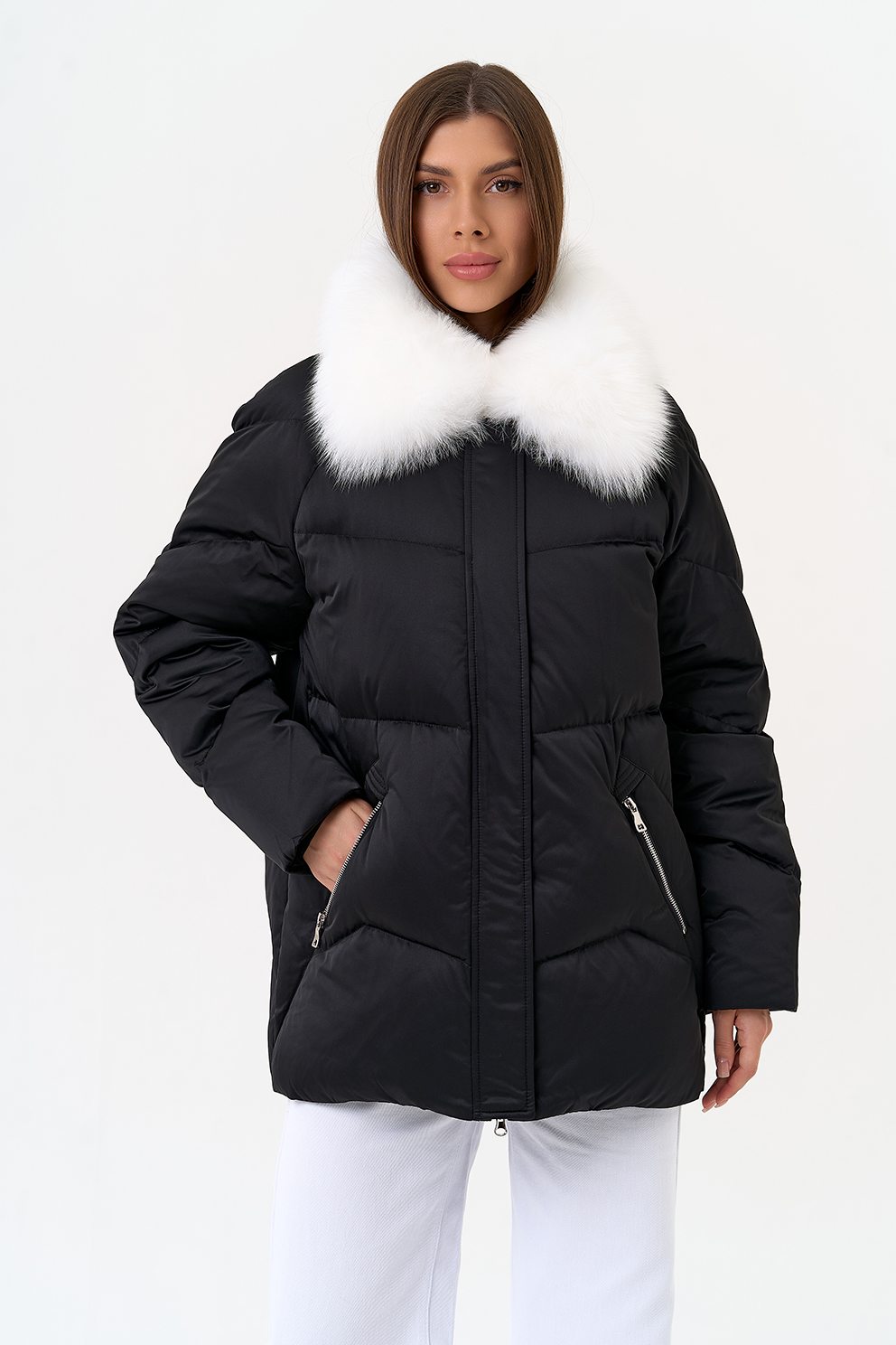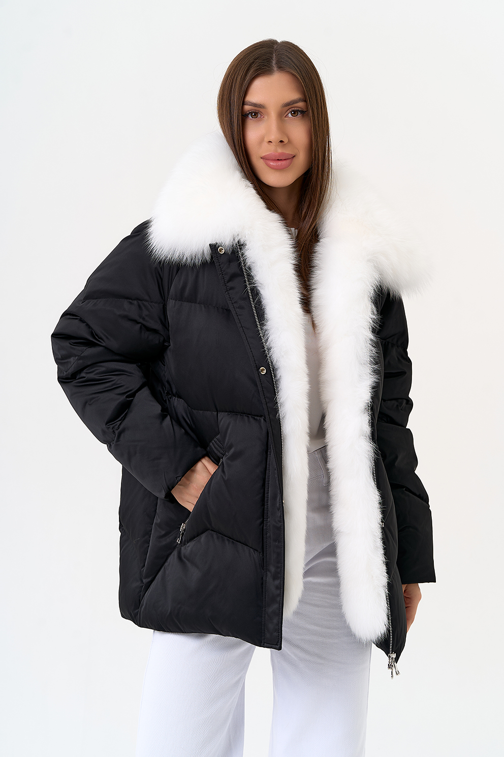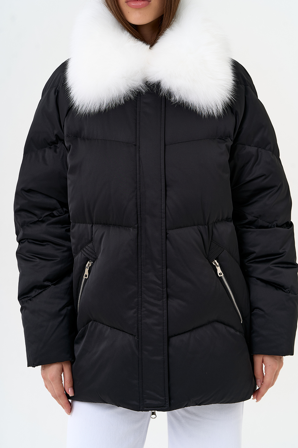 Отделка воротника - мех песца, цвет белый