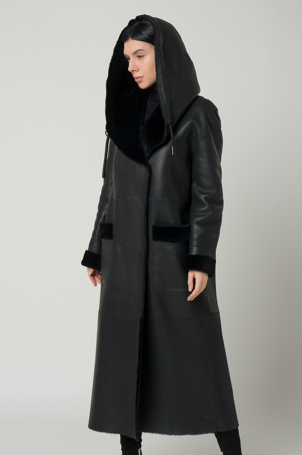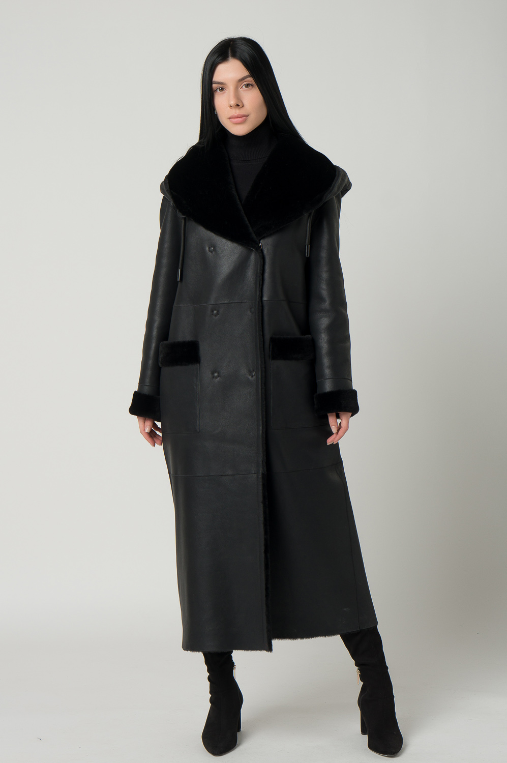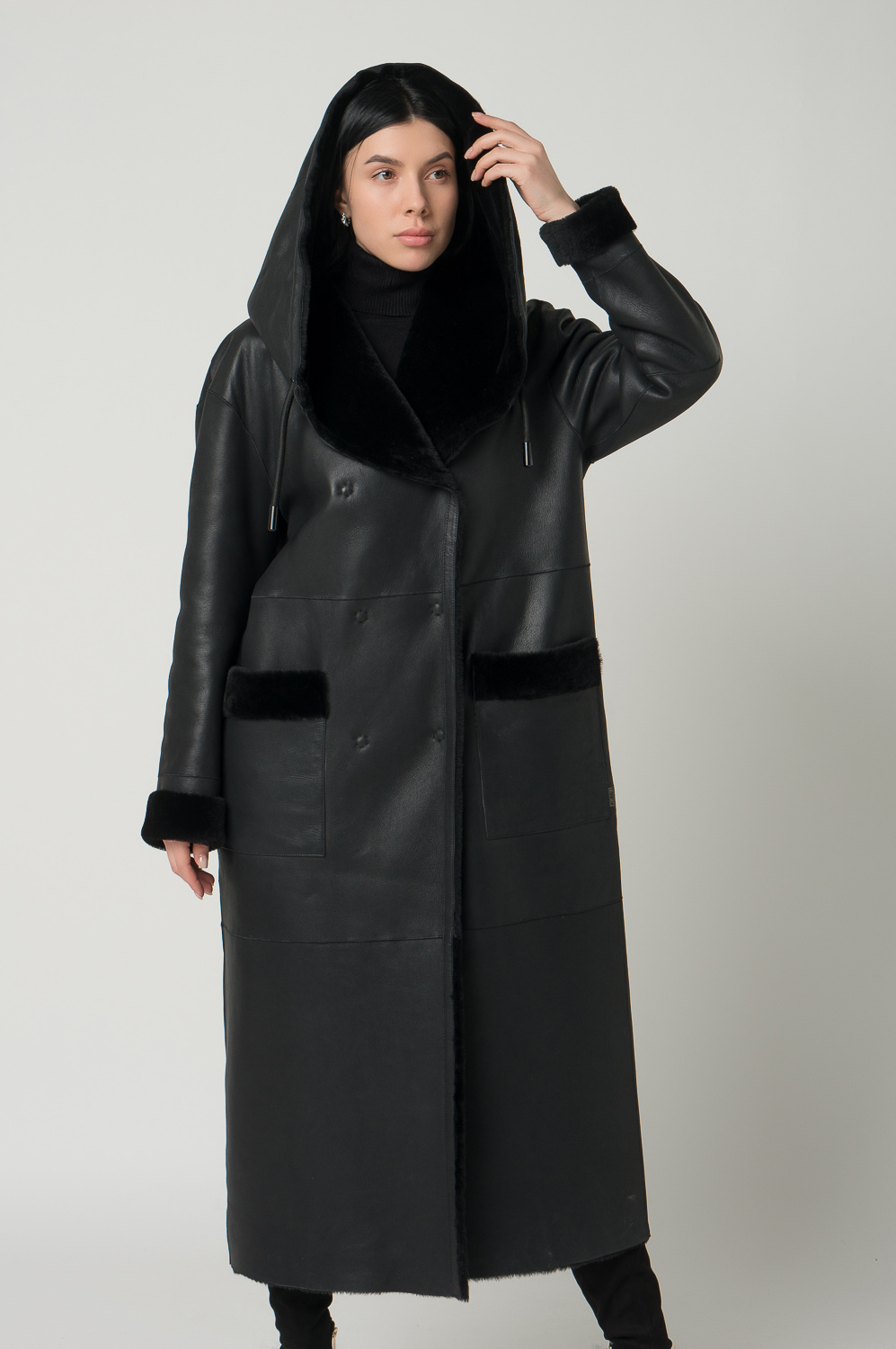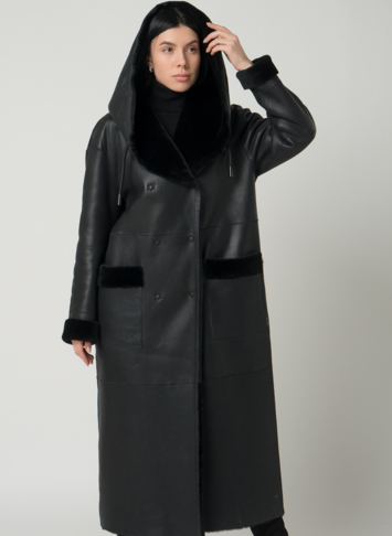 Удлиненная женская дубленка с акцентным капюшоном. Мех мериноса мягкий и хорошо согревает, а помогает ему в этом дубленая кожа, которая не пропускает холодный воздух. Высокое качество изделия позволяет вам носить модель не один сезон. Дубленка дополнена накладными карманами, кнопками и поясом. Представлен широкий размерный ряд до 54 размера.