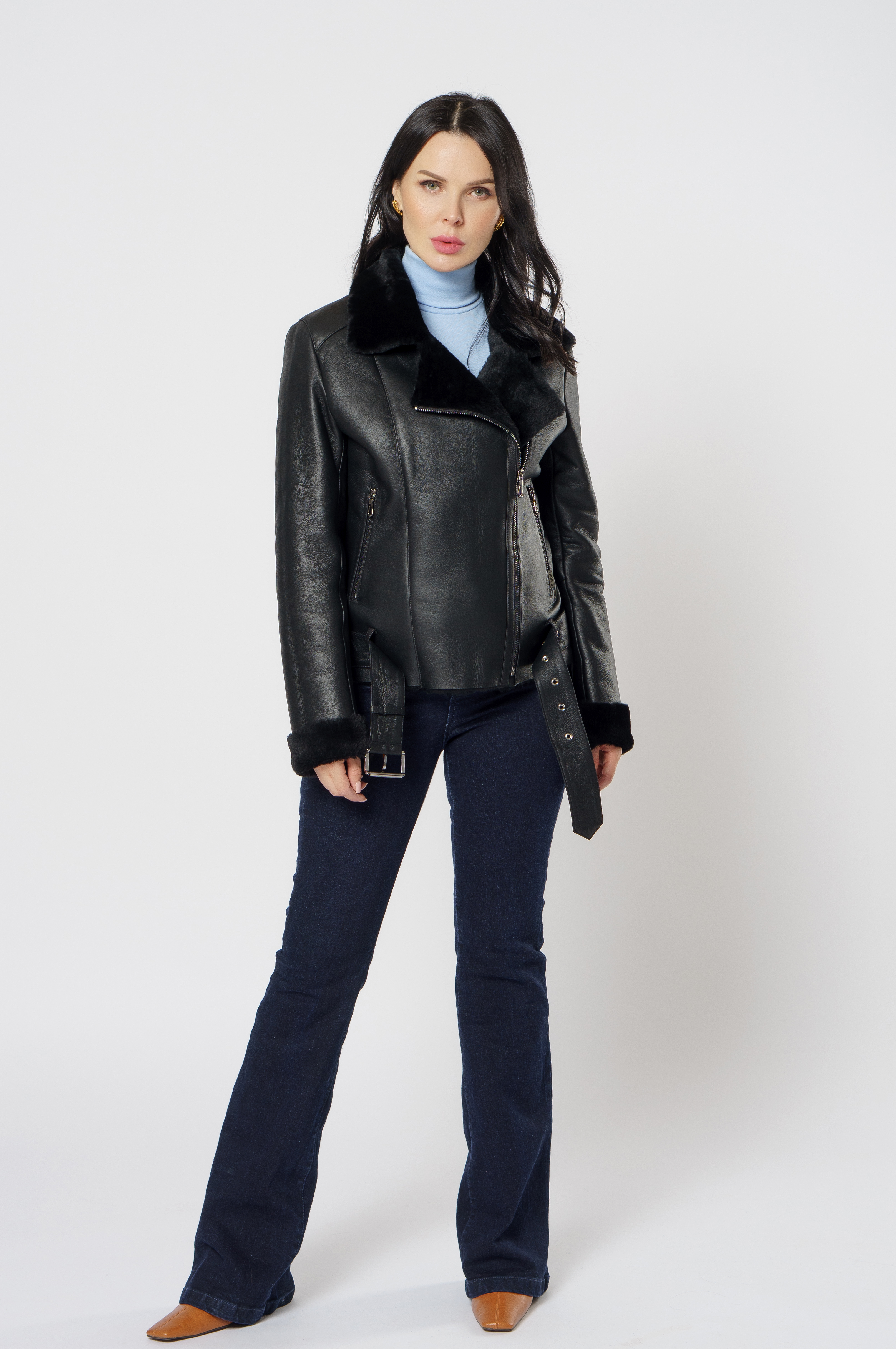 Женская дубленка косуха из овчины в классическом черном цвете - одна из самых популярных моделей за последние года. Стильный фасон, сохранение тепла и качественные долговечные материалы - основные причины ее популярности. Подойдет для молодой и активной девушки, которая следит за модой и любит комфорт. Модель дополняют ремень и молния.